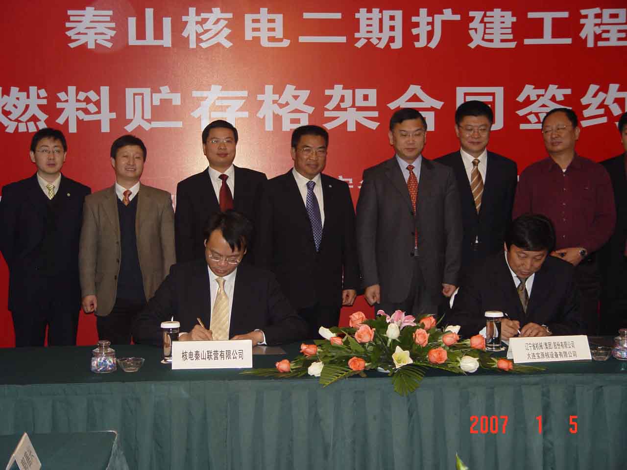 2007年1月5日下午,秦山核電二期乏燃料貯存隔架訂貨合同簽字儀式在大連香格里拉大飯店舉行。集團(tuán)公司董事長(zhǎng)吳巖、核電秦山聯(lián)營(yíng)有限公司楊蘭和總經(jīng)理等參加了簽字儀式。此次簽約的合同金額為4800萬(wàn)元,分兩批交貨,供秦山核電二期3、4號(hào)機(jī)組裝配。在簽字儀式上,核電秦山聯(lián)營(yíng)有限公司楊蘭和總經(jīng)理對(duì)大連寶原核設(shè)備有限公司過硬的制造技術(shù)和按期保質(zhì)完成交貨予以高度評(píng)價(jià),他表示,寶原公司在制造人員閘門和乏燃料隔架領(lǐng)域有著良好的業(yè)績(jī)記錄,在國(guó)內(nèi)屈指可數(shù)。