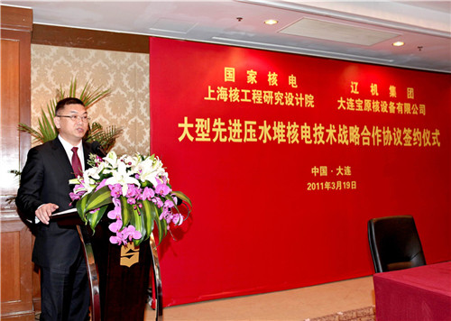 大連市副市長曲曉飛,保稅區(qū)管委會主任盧林,市長助理、市經(jīng)信委主任劉巖,市經(jīng)信委副主任于德虎參加了簽字儀式。遼機集團、大連寶原公司董事長吳巖,大連寶原公司總經(jīng)理溫殿水,副總經(jīng)理王殿祥,上海核工程研究設(shè)計院鄭明光院長、顧國興副院長等雙方代表參加了簽字儀式。