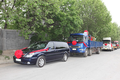 隨后,在禮炮聲中,裝載著大型設(shè)備的車隊,駛向大連寶原新廠區(qū)。