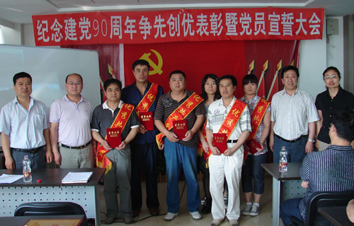于6月24日,合金投資黨委舉行了“紀(jì)念建黨90周年?duì)幭葎?chuàng)優(yōu)表彰暨黨員宣誓大會(huì)”。會(huì)議開(kāi)始前,與會(huì)人員高唱了《沒(méi)有共產(chǎn)黨就沒(méi)有新中國(guó)》、《我們走在大路上》、《走向復(fù)興》等紅歌。會(huì)上, 60多名黨員重溫了入黨誓詞。另外,還對(duì)在“創(chuàng)先爭(zhēng)優(yōu)”活動(dòng)中的先進(jìn)黨支部、優(yōu)秀共產(chǎn)黨員進(jìn)行了表彰。這次活動(dòng),增強(qiáng)了每一位黨員的榮譽(yù)感和責(zé)任感,要不辱使命、率先垂范,為企業(yè)的建設(shè)和反展做出應(yīng)有的共獻(xiàn)。