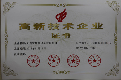 寶原公司獲得了大連市高新技術(shù)企業(yè)證書